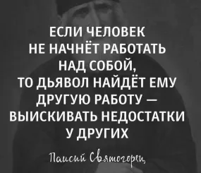 4 «Если хочешь стать добрым, стань строгим сам к себе и не убивай других своей строгостью. К себе будь строг, а за другими смотрит Бог» (Монах Симеон Афонский).