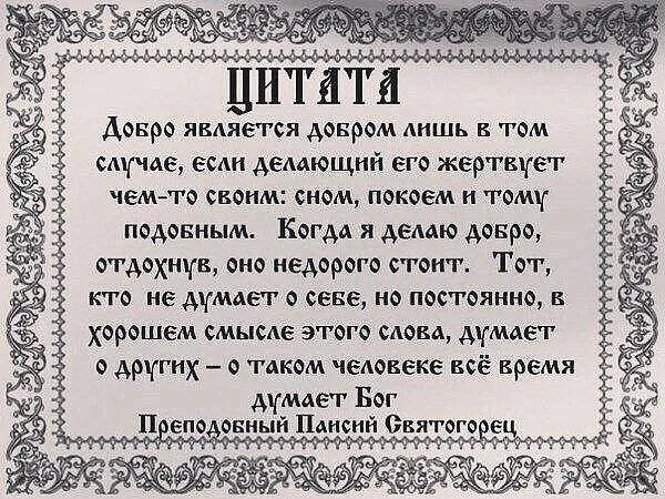 Себя спасать невозможно иначе, чем помогая спасаться другим. Человек - существо социальное. Любовь к себе - это любовь к Богу в нас (к Богу в себе). Это одна любовь на всех. Нельзя любить Бога, не любя ближнего, нельзя любить себя, не любя ближнего и не любя Бога. Потому голод другого — это и мой голод, и Христа голод. Накормить его - это накормить и Христа, и себя. Понятно, что кроме такой духовной пищи, человек, как животное, нуждается в пище обычной, и себя он кормит каждый день не столько духовно, сколько физически. Точно так надо относиться к другому человеку, т.е. понимая его различный голод: и телесный, и душевный, и духовный, и посильно питать голодных. Из этого сердечного переживания и понимания рождается милосердие, способность прощать, любить вопреки, помогать несмотря на...