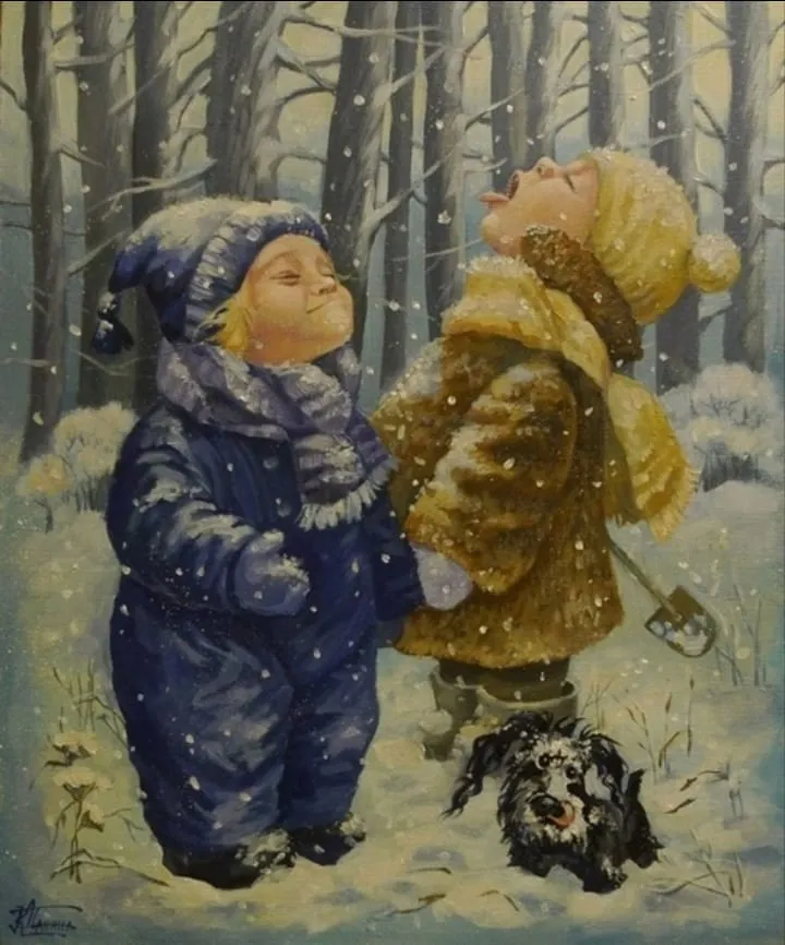 Держась за руки и кружась в полёте, полетели снежинки на розовые от мороза щёчки. Ах, как горячо! И растаяли, побежали ручейками-слёзками, лишь радостная песня от них осталась. Какое-то время она ещё кружится вокруг девочки, а та смеётся, хохочет, слушая голос растаявших снежинок. И летит их бесхитростная песенка волной счастья, передаваясь не от уха к уху, а от сердца к сердцу.