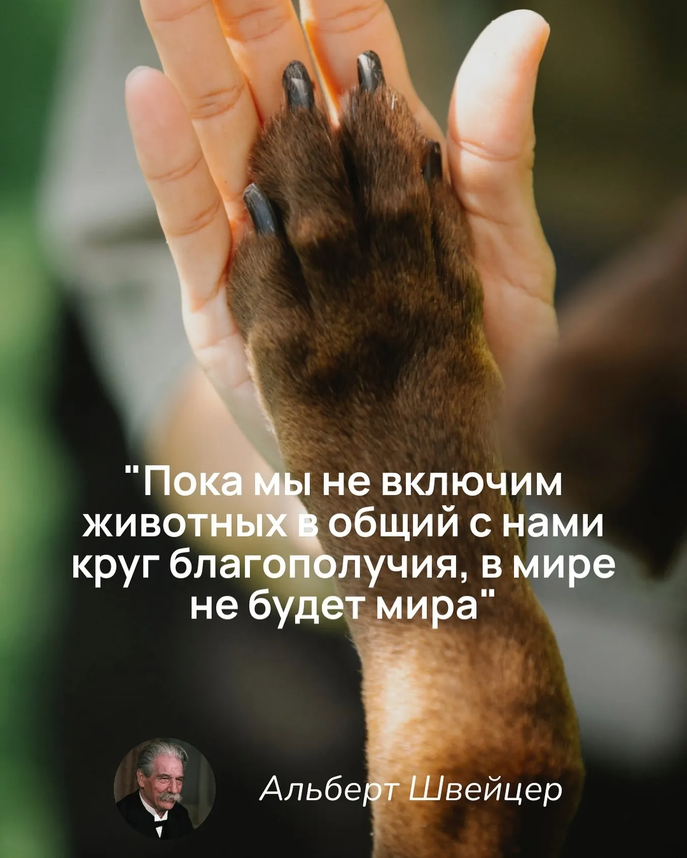 Животные — наши помощники уже потому, что делают нас добрее, отзывчивее. Они приходят на помощь всякому страждущему сердцу. Мы должны быть благодарны им за это, должны помогать им там, где они без нас совершенно беспомощны.