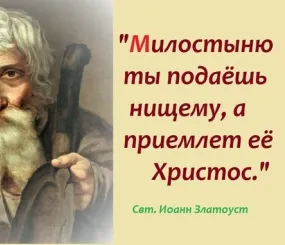 Сам Господь, обличая книжников и фарисеев, советовал: «Подавайте лучше милостыню из того, что у вас есть, тогда все будет у вас чисто» (Лк. 11:41). То есть милостыня — кратчайший путь к чистоте, обретаемой в Боге.