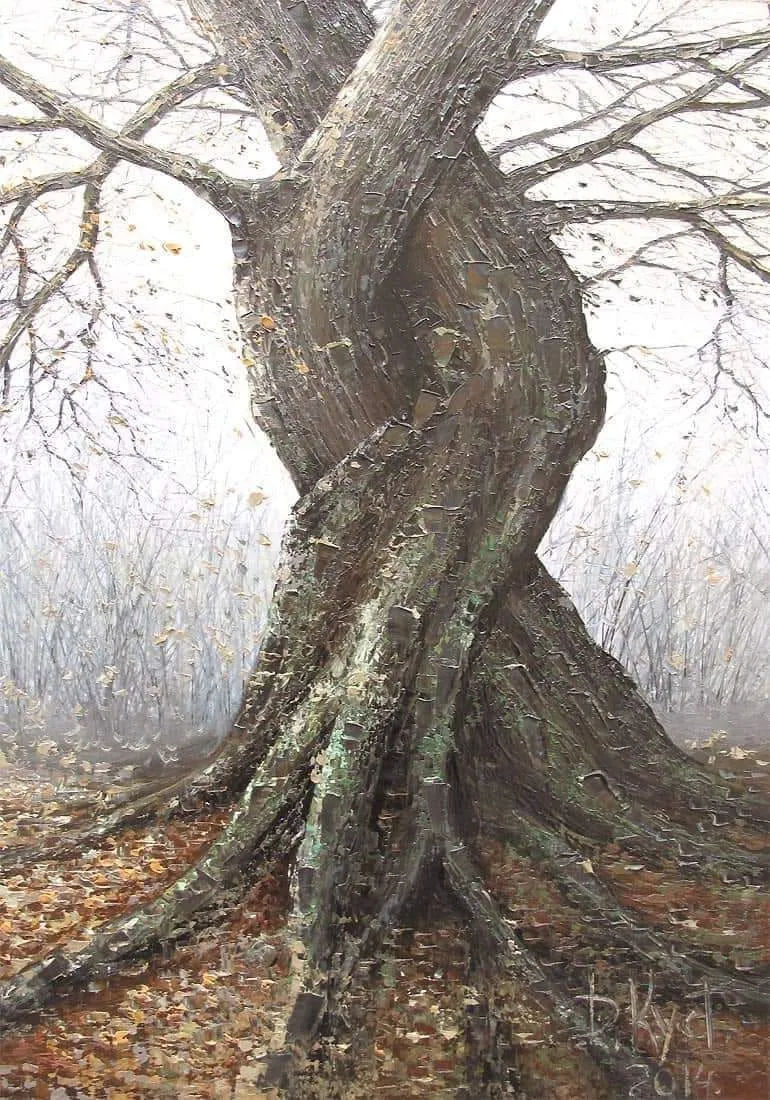 и дуб стоит, как великан плечистый,