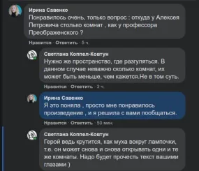 «Возможно, разгадка страшной тайны прячется за этой дверью», — подумал Алексей Петрович и решительно шагнул в таинственную комнату. Но, переступив порог, он замер в нерешительности. На большом кожаном диване спала большая и уже немолодая женщина. Она приоткрыла глаз, взглянула на Алексея Петровича, затем перевернулась на спину и недовольно спросила: