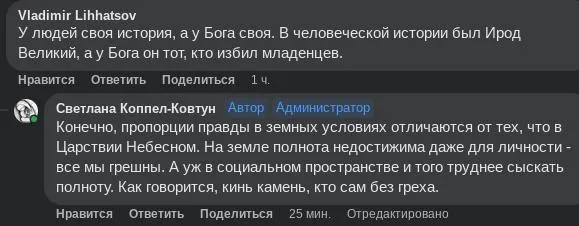 Отсюда видно, что результат всецело зависит от того, искренен ли сам порыв устроить нормальный мир или это только ширма для чьих-то личных интересов, от того какие силы задействованы — здравые или нет, и каково на данный момент количество искренних прекрасных душ в самой России, в Украине и в мире (кому нужен и здравый мир, и подвиг). Любые спекуляции на эту тему — бесплодны.
