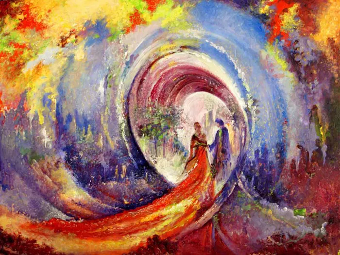 И в тот же миг воды Океана и маленькой речушки объединились. Брачное таинство сотворило чудо: вся земля наполнилась живительной влагой, распространяемой по руслу когда-то малой речушки, теперь — Великой Реки, Жены Океана. Пустыня отступила. Цветы и птицы запели хвалу благому союзу Реки с Океаном.