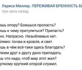 * См. Дневники автора (01.07.2018): «Истина открывается при взаимодействии людей. И дело не в советах, а в Присутствии. Когда два человека присутствуют в Присутствии, происходит чудо Встречи («Где двое или трое собраны во имя Моё, там Я посреди»). Присутствовать в Присутствии можно только для другого, это и есть любовь. Любить — это присутствовать в Присутствии (для другого). Я становлюсь Присутствием в Присутствии Другого (Бога и человека). Жизнь — в Присутствии».