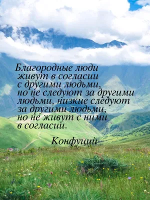 Благородные люди живут в согласии с другими людьми, но не следуют за другими людьми, низкие следуют за другими людьми, но не живут с ними в согласии. Конфуций