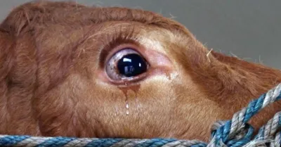 Все произошло в то время, когда работники бойни тащили животное по направлению к убойному цеху. Внезапно бык опустился на землю, и слезы покатились из его глаз.
