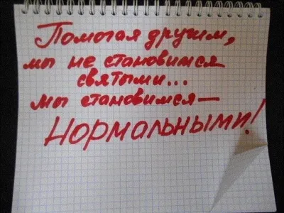 Юрий Поздняков: Тут, как мне думается, всё глубже... Имеется ввиду, что если человек начинает делать добрые дела "для галочки", не от души, а ради признания, думая что эти дела и есть святость, что добрыми делами можно стать святым и т.д. Делать добро, помогать нуждающимся и защищать слабых... это НОРМАЛЬНО. Ненормально этого не делать, ненормально декларировать что это святые вещи... мнение моё и не обязательно правильное для всех. Святых на земле нет, если только им был Иисус.