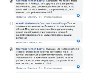 Светлана Коппел-Ковтун: Хозяином? Кто хозяин моего контекста - я или Бог? Или другие в Боге, например? Можно ли не быть рабом своего контекста, как, и что такое мой контекст: контекст, который я создаю, или контекст, который меня создаёт?