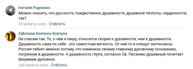 Утрачивая способность позитивного предожидания другого (презумпция прекрасности и невиновности другого), мы утрачиваем и базовое духовное основание русскости.