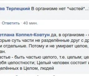 Чтобы вылечить заболевший орган, надо лечить, как правило, не только орган, но и весь организм в целом - иначе невозможно устранить причину болезни. То есть, орган может заболеть по своей собственной причине (его личный сбой), и по причине сбоя в целом организме (болезни «социального» характера). Причем даже при лечении сбоя отдельного органа надо учитывать его отношения с другими органами, чтобы не угробить в процессе лечения одного органа другие органы, а то и весь организм (что случается довольно часто: одно лечим, другое калечим).