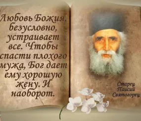 Люди ошибаются, так случается (можно ошибиться в человеке и можно безвозвратно испортить отношения - убить общее «мы», ведь семья - это некая общая природа на двоих, живая сущность, которая может быть убита), но людей нельзя приговаривать друг к другу. Малая церковь - это райский уголок посреди лежащего во зле мира, где любящие друг друга люди становятся богами друг ради друга, помогая врастать в Бога ближним, поддерживая друг друга, беря на себя тяготы друг друга, потому недопустимо превращать семью в ад, это противоречит замыслу Творца.