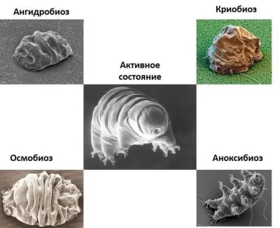 Криптобиоз – это особое состояние животного, в котором все обменные процессы внутри организма фактически останавливаются. В это время тихоходка даже не стареет!