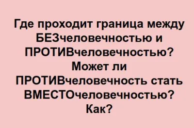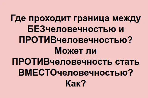 Где проходит граница между БЕЗчеловечностью и ПРОТИВчеловечностью? Может ли ПРОТИВчеловечность стать ВМЕСТОчеловечностью? Как?