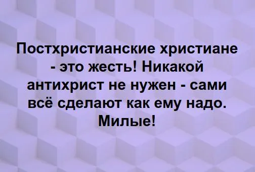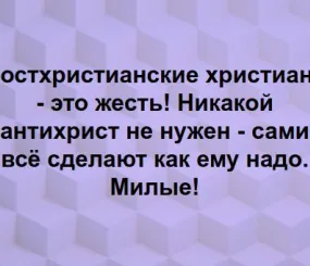 Постхристианские христиане - это жесть! Никакой антихрист не нужен - сами всё сделают как ему надо. Милые!