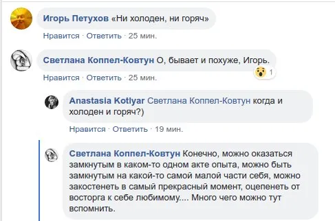Не только «ни холоден, ни горяч» - бывает похуже. Можно оказаться замкнутым в каком-то одном акте опыта, можно быть замкнутым на какой-то самой малой части себя, можно закостенеть в самый прекрасный момент, оцепенеть от восторга к себе любимому.... Много чего можно тут вспомнить.