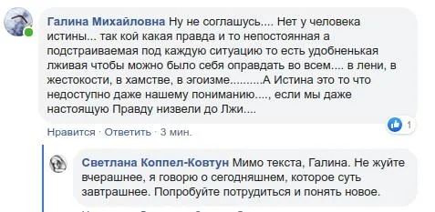 Особенность нашего времени - истинна действительно у каждого своя: что человек назовёт для себя истинным, то и будет для него истинным. Истину сегодня мы выбираем - по вкусу, по зову сердца, по голоду души... Если кто хочет выбрать истину по памяти - раньше это было в некотором смысле возможно (до поры, конечно, но было возможно), теперь выбирающий истину по памяти будет обманут. Выходит, кто не успел по-настоящему «проголодаться», кто не знаком лично с истиной хотя бы на уровне сердечной жажды, тот уже вряд ли получит возможность обрести истину.