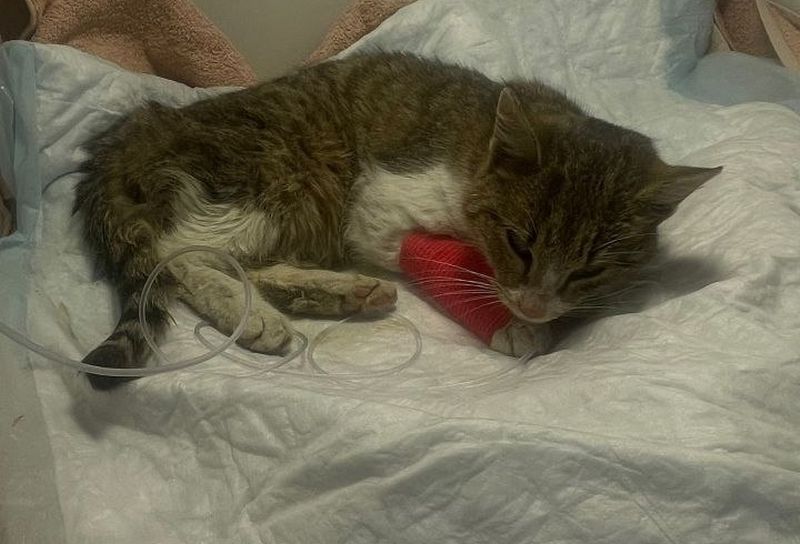 На следующий день животное доставили в клинику. Там на мордочку бедняжке надели кислородную маску. Зверька положили под капельницы. Ветеринары диагностировали ушиб легкого — вероятно, от удара или сдавливания в дороге. Несмотря на все усилия врачей, утром 26 ноября сердце кошки остановилось. Как выяснилось, ее легкие были похожи на промокшую губку, и шансов на выживание практически не оставалось.