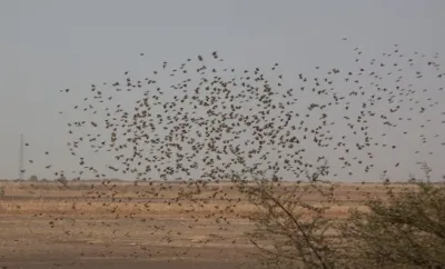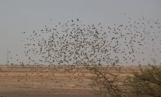 Коршун или какой-то другой крылатый хищник вздумал напасть на воробья и погнался за ним. Очень быстро в небе появилась большая шарообразная стая и спрятала внутри себя пташку - потенциальную жертву, хищник был вынужден отступить.