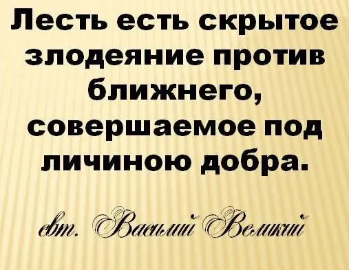 «Лесть есть скрытое злодеяние против ближнего, совершаемое под личиною добра».