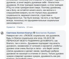 Не стоит забывать, что душевное всегда прежде духовного, и духовное - это не бездушное, не внедушевное, а сверхдушевное, наддушевное (надстройка, которая над постройкой, а не без неё).