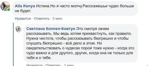 Мой ответ: Это смотря зачем рассказывать. Мы ведь хотим прихвастнуть, как правило. Нужна чистота, чтобы рассказывать безгрешно и чтобы слушать безгрешно - всё дело в этом. Но свидетельствовать о чудесах порой тоже нужно - когда это чудо важно и для другого, других, когда оно не только для тебя и о тебе.