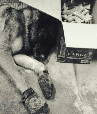 Немецкая овчарка отдыхает после 20-часового поиска выживших среди обломков Всемирного торгового центра после теракта 11 сентября 2001 года.