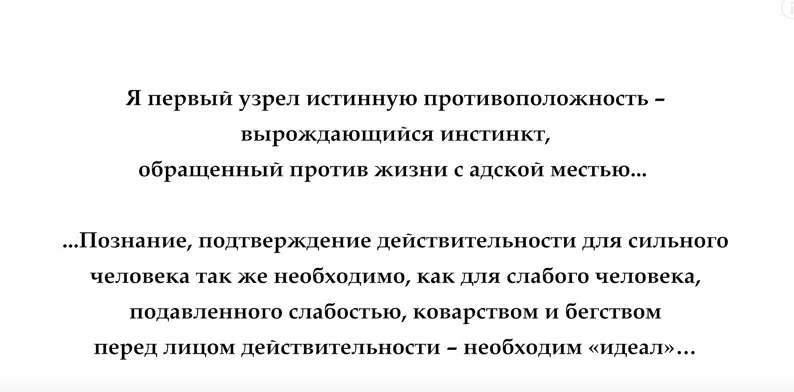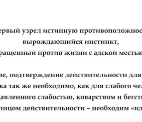 наблюдение и все органы наблюдения. Рассматривать с точки зрения больного более здоровые понятия и ценности, и наоборот, с точки зрения полноты и самоуверенности более богатой жизни смотреть на таинственную работу инстинкта декаданса - таково было мое длительное упражнение, мой действительный опыт, и если в чем, так именно в этом я стал мастером. Теперь