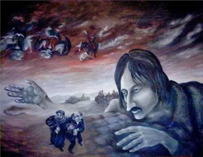 Любой художник носит в себе чувство подлинного, которым смотрит на мир и судит мир. Так Гоголь в своих «Мёртвых душах» зафиксировал отклонения от нормы. Он ведь не выдумал персонажи, они - сродни откровению, а принять его - большой труд и сила. Не хватило Гоголю чего? Преодоления. Хотелось получить в откровении ещё и путь преодоления несоответствия - непосильнейшая задача. Хотя, он вполне мог достичь цели, побывав на том берегу и вернувшись, а не умерев.