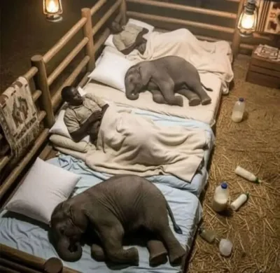 Каждому слонёнку назначают «няню», которая кормит из бутылочки, укутывает ночью и спит рядом, чтобы слонёнок чувствовал присутствие рядом. Учёные называют это важной частью реабилитации, ведь слоны — одни из самых социально чувствительных животных на Земле.