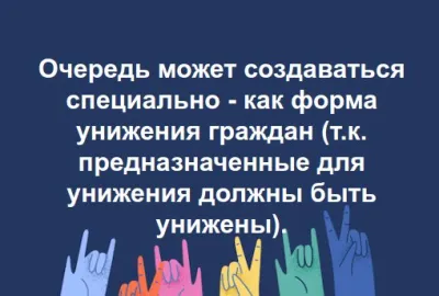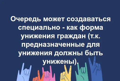 Очередь может создаваться специально - как форма унижения граждан (т.к. предназначенные для унижения должны быть унижены).