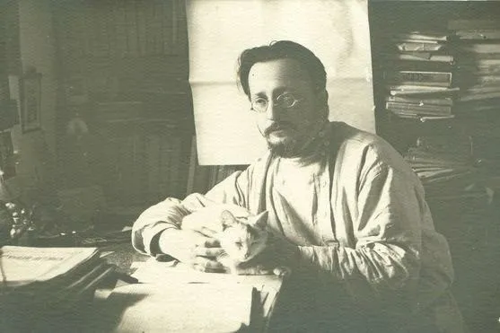<…> Это был крупный рыже-белый кот, с янтарными, с чернью, глазами и ярко-розовым носом. Щеки у него были пухлы и округлы, как у филина. Он никогда ни к кому не шел на руки, кроме Петра Ильича, к которому сам не прыгал на колени, но трогал его лапой, став на дыбки, и требовал взять его. Петр Ильич брал его и гладил рукой, и кот закрывал глаза и пускал протяжное и важное свое: «урлы, урлы, урлы-рлы-рлы-лы».