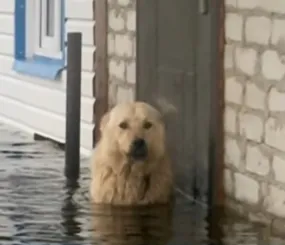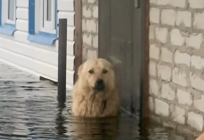 Во время наводнения Дружок просто не мог позволить себе бросить свой пост и преданно охранял дом до тех пор, пока на лодке за ним не приплыли дорогие хозяева.
