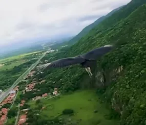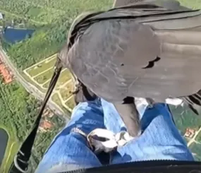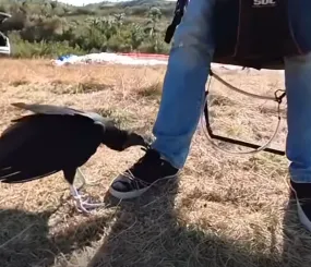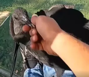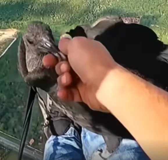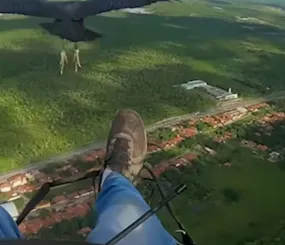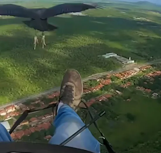 Чтобы добраться до площадки, с которой можно взлететь, Рикарду идет на вершину горы. На полпути его и встречает Уру. Птица следует за ним, трогает и поклевывает его снаряжение, как будто говоря: «Ну когда мы уже полетим? Я тебя так ждал!» Вместе человек и птица взмывают в небо. Гриф летит близко-близко к Рикардо, совершенно его не боясь, и они вместе наслаждаются высотой и чувством невероятной свободы. Нередко Уру устает парить в воздухе и садится к своему другу на плечи или на ноги, как будто Рикарду — его личный воздушный транспорт!