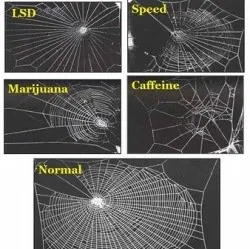 В 1995 году ученые НАСА изучали влияние различных препаратов на ткацкие способности пауков. Они полагали, что таким образом возможно будет проанализировать периодическую структуру (или ее отсутствие) прядения паутины. Ничего особенного из этого не вышло. Тем не менее, проявилось явное сходство воздействия наркотических препаратов как на человека, так и на пауков.