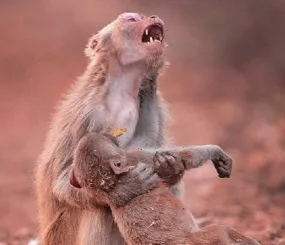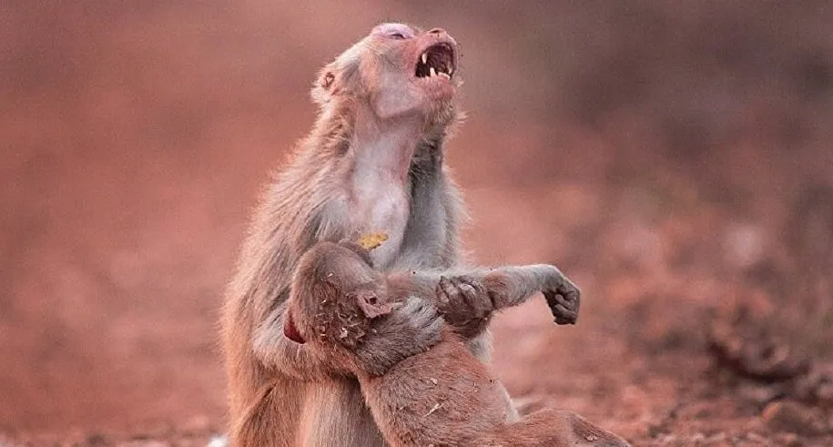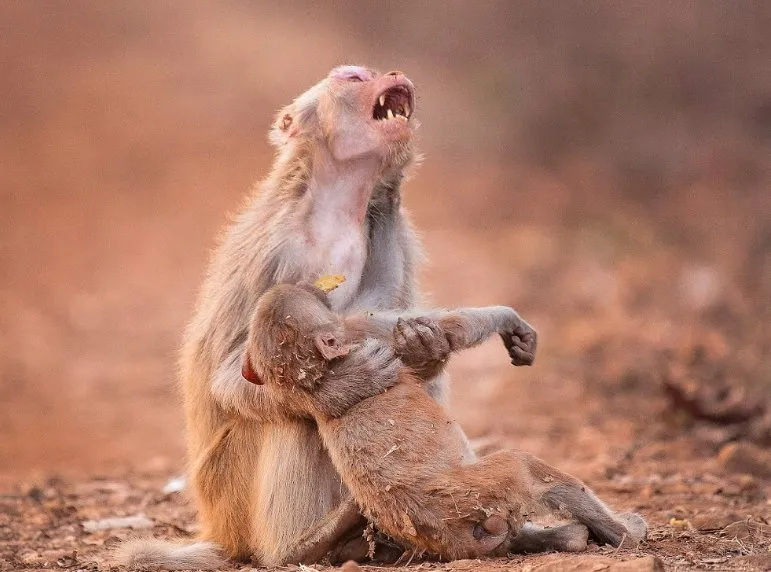 Этот удивительный снимок, ставший символом материнского горя животных, сделан в Индии фотографом Avinash Lodhi, который рассказал, что такое случилось в его карьере единожды. На фото запечатлён плач обезьяны над «умершим» детёнышем, которого та держит на руках. На самом деле малыш не умер, а только упал и, вероятно, отключился. Вскоре после того, как был сделан снимок, он пришёл в себя. Но пока мать считала его мёртвым, горю страдалицы не было предела. «Все произошло так быстро, что я даже не заметил, как сфотографировал происшествие. Когда я отсматривал изображения и наткнулся на снимок, я застыл и замолчал. Примерно на час», — делится впечатлением фотограф.