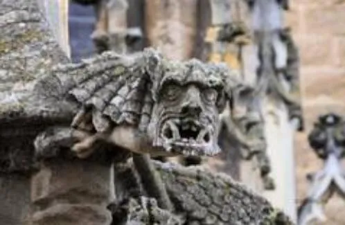 Ещё одна причина, по которой готика стала ассоциироваться с тёмными потусторонними силами, состоит в том, что внешняя отделка готического храма нередко изобилует не только флористической и вообще лесной символикой, но и сценами адских мук, а также изображениями змеев и драконов. Такое убранство аллегорически говорит о нашем мире, лежащем во зле. Однако, романтизм, с его склонностью к гротеску и сентиментальности, прочёл готическую символику буквально. Но ещё буквальнее это сделала «неоромантическая» субкультура современных «готов», воспринявшая от классической готики атрибутику погребения, а от классического романтизма – декадентское преклонение перед неизбежностью физической смерти.