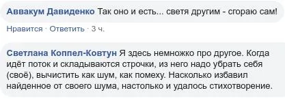 Когда идёт поток и складываются строчки, из него надо убрать, устранить себя, своё мелкое, самостное, вычистить как шум, как помеху. Насколько избавил себя ищущего (и себя найденного) от своего шума, от своего человеческого, только человеческого (вненебесного), настолько и удалось стихотворение.