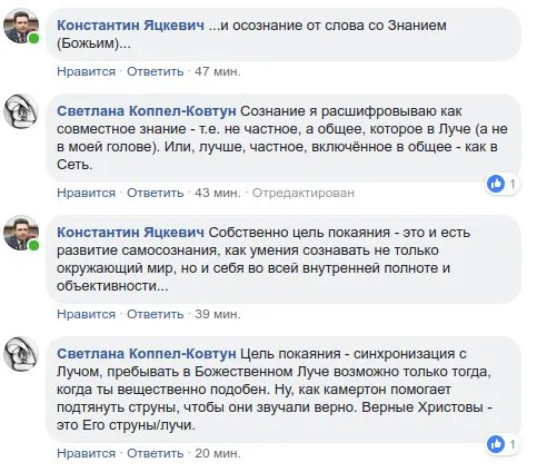 Цель покаяния - синхронизация с Лучом, пребывать в Божественном Луче возможно только тогда, когда ты вещественно подобен. Ну, как камертон помогает подтянуть струны, чтобы они звучали верно. Верные Христовы - это Его струны/лучи.