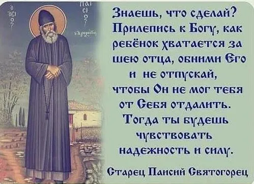 Прилепись к Богу, как ребёнок хватается за шею отца., обними Его и не отпускай, чтобы Он не мог тебя от Себя отдалить. Тогда ты будешь чувствовать надёжность и силу.
