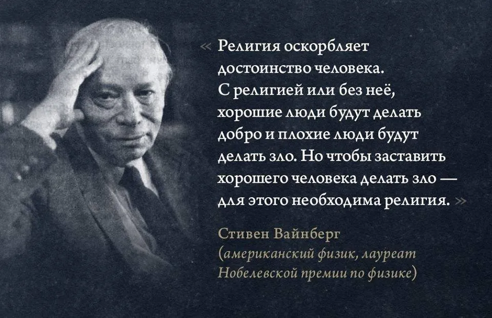 Интересная мысль (текст на картинке), не поспоришь ни с чем, кроме самой первой фразы, которая верна только в контексте сказанного об эрзац-религии, хоть сам автор высказывания так не думает. То есть религия вообще не оскорбляет достоинство человека, а только религия в том смысле, о котором он говорит. За пределами этого высказывания остаётся немало другого, важного и ценного. Например, религия (а не её суррогат) наоборот, наделяет достоинством, ибо способна превратить плохого человека в хорошего, хорошего в очень хорошего и даже прекрасного. Религия - путь развития в добре, путь становления богом, но только для тех, кто живёт в подлинном, а не суррогатном её формате, т.е. для живущих в Боге.