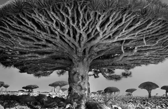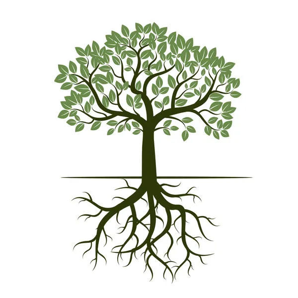 Дерево сильно своей тягой в небо. Эта тяга создаёт дерево. Оно растёт в земле, многие деревья корнями своими едины (например березовая роща - едина на уровне корней, деревья соединены в единую систему и поддерживают друг друга). Корневища березовой рощи - та же ризома, но она возможна только потому, что есть вертикаль.