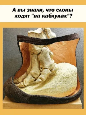 У слона встроенная амортизация. А то, что мы бы назвали пяткой, на самом деле играет роль скрытого «каблука» — мягкого и эластичного, как подушка безопасности.