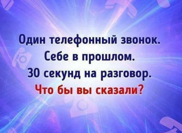 Что бы я себе в прошлом посоветовала? Даже не знаю... Жизнь - это процесс, но для меня это сугубо внутренний процесс. То есть, все мотивировки не вовне, а внутри. Чтобы что-то понять, надо что-то пройти. Без того или иного опыта не пришло бы и понимание - т.е. советы бессмысленны. Мой советчик подобен тому, что был у Сократа, и Он умнее меня. Внешние советы могут только помешать...