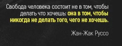 Свобода человека состоит не в том, чтобы делать что хочешь: она в том, чтобы никогда не делать того, чего не хочешь.