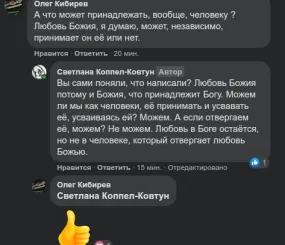 Когда человек выходит из Бога, Бог не может в нём пребывать - святость невозможна. Святость ВСЯ - Бог, а не человек. Человек может присвоиться и усвоиться Богу - стать Божьим. Божьим, а не своим? По-настоящему своим и Божьим - одно, когда своим, а не Божьим, тогда не по-настоящему своим (ветхим, а не новым - т.е. грешным, павшим во грех, не равным себе самому).