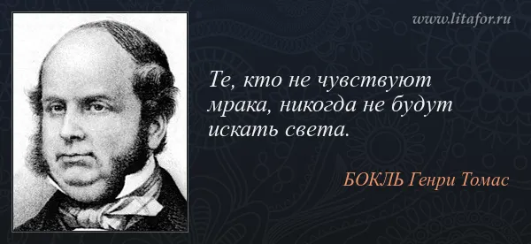 *Бокль Генри Томас (1821–1862). Видный английский историк и социолог-позитивист, представитель географического направления в социологии, автор "Истории цивилизации Англии". Основная мысль этого труда заключается в том, что цивилизация является необходимым результатом закономерной цепи причин и что основным фактором общественного развития в странах умеренного климата, где человек не находится в рабстве у природы, является разум, т. е. знание, наука, просвещение, тогда как в нецивилизованных странах общественная жизнь находится целиком во власти природы. Для установления законов исторического процесса необходимо поэтому изучить законы разума и природы.