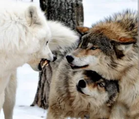 Не знаю правда это или нет, при случае надо проверить. Волк никогда не набрасывается на волчицу даже если она из другой стаи. Зная это, волчица всегда собой прикрывает шею своего волка от других волчиц.