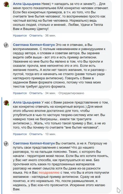 Три бытийных состояния человека: текст, песня, антипесня. Антипесня убивает, как песня животворит.
